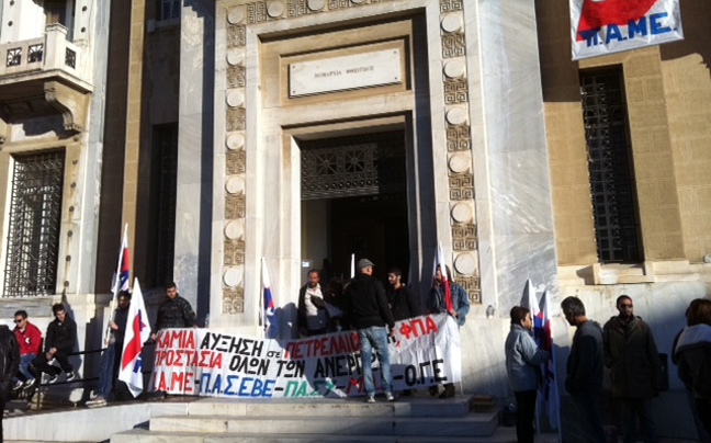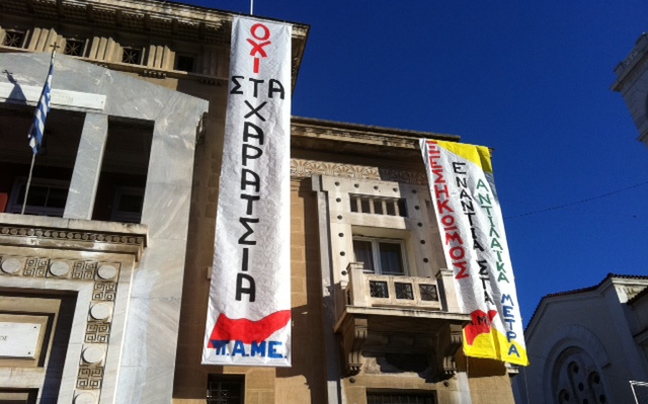 Στη συνέχεια μπήκαν μέσα και αφού κατέλαβαν το κτίριο ανήρτασαν πανό με συνθήματα όπως «Όχι στα χαράτσια» και «Ξεσηκωμός ενάντια στα αντιλαϊκά μέτρα».