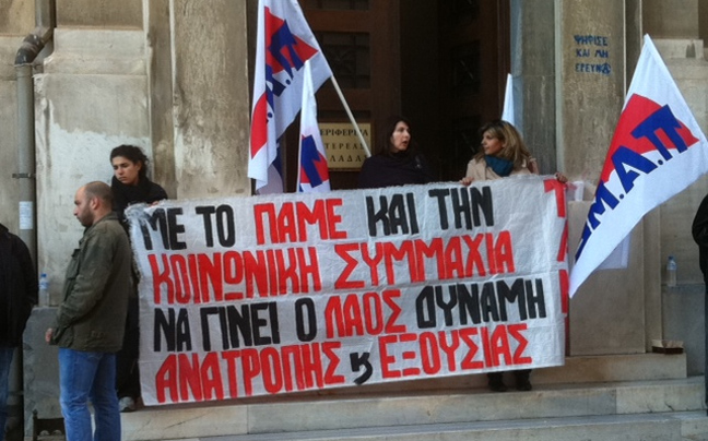 Τους πάντες αιφνιδίασαν τα μέλη του ΠΑΜΕ που κατέλαβαν το πρωί το κτίριο της Περιφέρειας Στερεάς. Πριν καν ο υπάλληλος του κτιρίου ανοίξει την πόρτα, τα μέλη του ΠΑΜΕ περίμεναν στις εισόδους της Περιφέρειας στην πλατεία Ελευθερίας στη Λαμία.