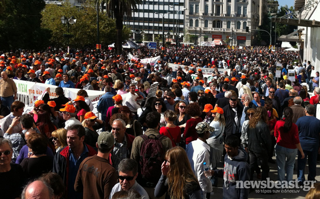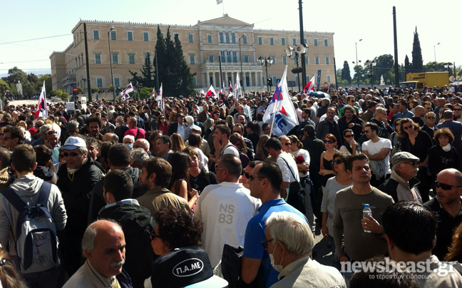Δεκάδες χιλιάδες είναι οι διαδηλωτές και σήμερα στο Σύνταγμα κατά των μέτρων λιτότητας.