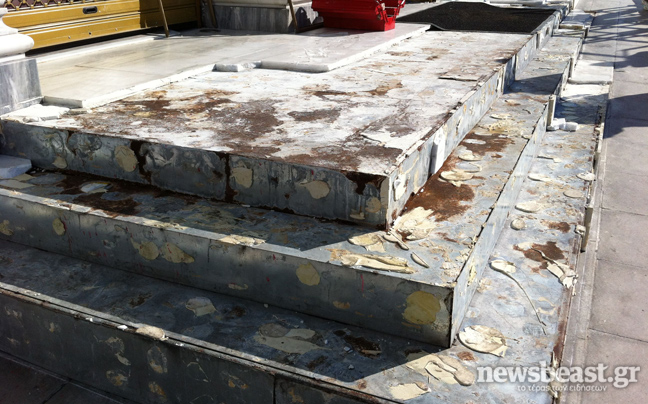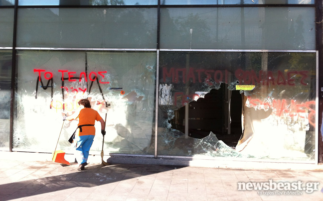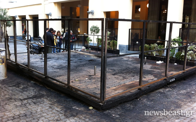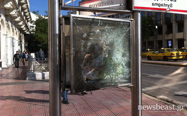 Σε κάθε δρόμο γύρω από το Σύνταγμα τα αποτελέσματα από το σκηνικό χάους που έστησαν χτες οι κουκουλοφόροι είναι εμφανή.
