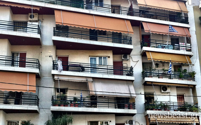 Παραδοσιακά τις ημέρες των εθνικών επετείων, οι Έλληνες συνήθιζαν να βάζουν την εθνική σημαία στα μπαλκόνια των σπιτιών τους.