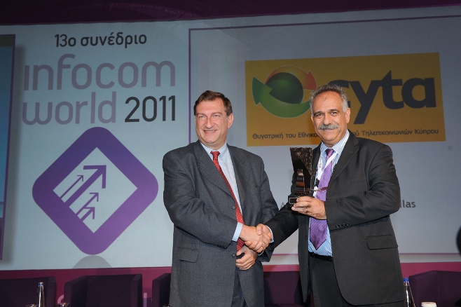 Βραβείο ανάπτυξης απέσπασε η Cyta Ελλάδος, θυγατρική του Εθνικού Οργανισμού Τηλεπικοινωνιών Κύπρου, στο πλαίσιο του 13ου διεθνούς συνεδρίου τηλεπικοινωνιών «Infocom World», το οποίο διοργανώθηκε πρόσφατα από την Smart Press με τίτλο «Ψηφιακή Ελλάδα: Η επόμενη μέρα της κρίσης».