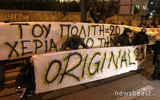 Η συγκέντρωση στο Σύνταγμα ενάντια στην απόφαση για την ποινή κάθειρξης 20 ετών σε βάρος του ηγούμενου της παλαιάς μονής Εσφιγμένου, Μεθοδίου, και ενός μοναχού συνεχίζεται, ενώ δεν έλειψε και η μικροένταση.