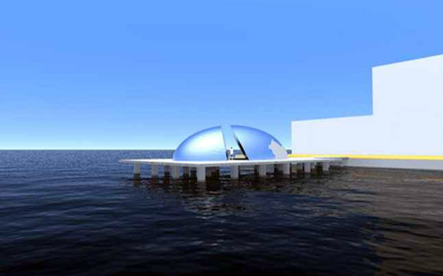 Το τρίτο βραβείο κέρδισε η πρόταση των Χρήστου Κύρου και της Γεωργίας Παρθενίου με έναν ελλειψοειδή θόλο που έχει δύο υποπεριοχές: μία στεγασμένη και άλλη μία ημιυπαίθρια. Στην τελευταία οι περσίδες μπορούν να περιστρέφονται, ώστε να παρέχεται κατά περίπτωση προστασία από τον άνεμο ή το δυνατό ήλιο. Η στιλπνή επιφάνεια του θόλου είναι στραμμένη προς Νότο και καλύπτεται από αυτοκαθαριζόμενους υαλοπίνακες, σε συνδυασμό με φωτοβολταϊκά πάνελς.