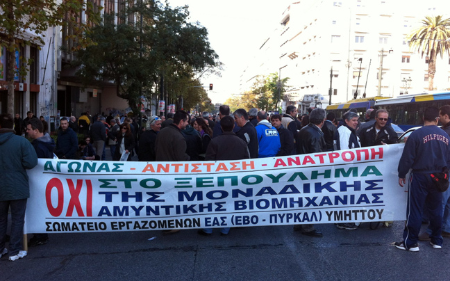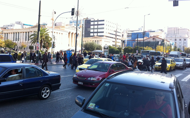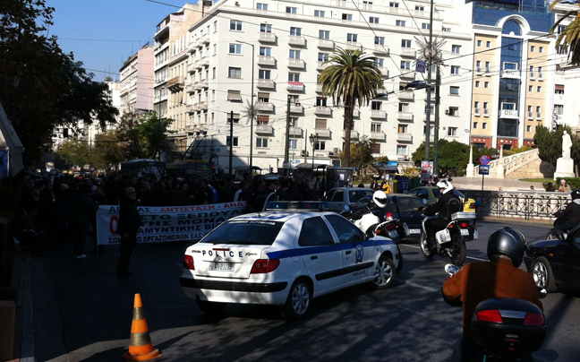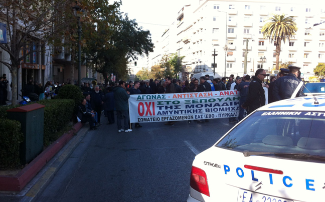 Μετ’ εμποδίων διεξάγεται αυτή την ώρα η κυκλοφορία των οχημάτων στην Πανεπιστημίου, εξαιτίας της συγκέντρωσης διαμαρτυρίας που πραγματοποιούν οι εργαζόμενοι της ΕΒΟ, της ΠΥΡΚΑΛ και της ΕΑΣ, έξω από το Γενικό Λογιστήριο του Κράτους.