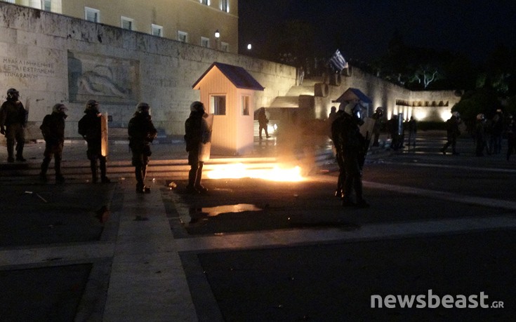 Αξίζει να σημειωθεί πως ούτε τα φυλάκια των Ευζώνων γλίτωσαν από τις συγκρούσεις, αφού έπιασαν φωτιά από μολότοφ που έπεσαν στο σημείο.