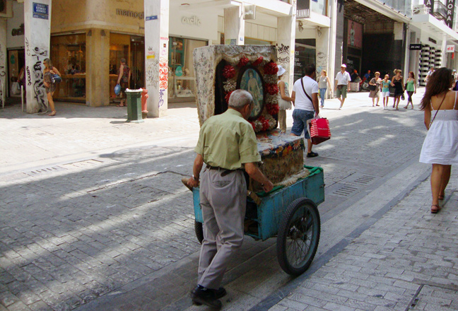 «Ποιος να πάει διακοπές φέτος; Όλοι στην Αθήνα θα μείνουν. Αύγουστος είναι και έχει κίνηση στους δρόμους. Οι περισσότεροι παραμένουν στην πρωτεύουσα για δουλειές. Δεν το βλέπετε; Είναι η πιο δύσκολη χρονιά λόγω των οικονομικών συγκυριών», μας λέει ο Ηλίας Κοστίδης, που πουλάει καρύδες στην πλατεία Μοναστηρακίου. Κάνει αυτή τη δουλειά τα τελευταία 30 χρόνια. Κάποτε είχε πελάτες. Τώρα βλέπει ότι κι αυτοί λιγοστεύουν. Ο κύριος Ηλίας δεν έχει άλλη επιλογή.