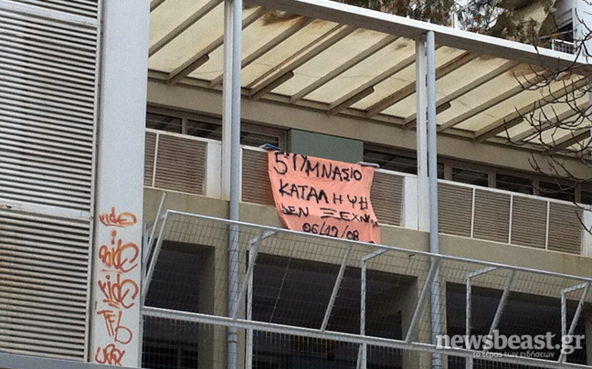 Ένα σχολείο στην οδό Αραχώβης κάνει κατάληψη σήμερα. Οι μαθητές έχουν κρεμάσει ένα πανό που αναγράφει «Ημέρα Μνήμης η 6η Δεκεμβρίου».