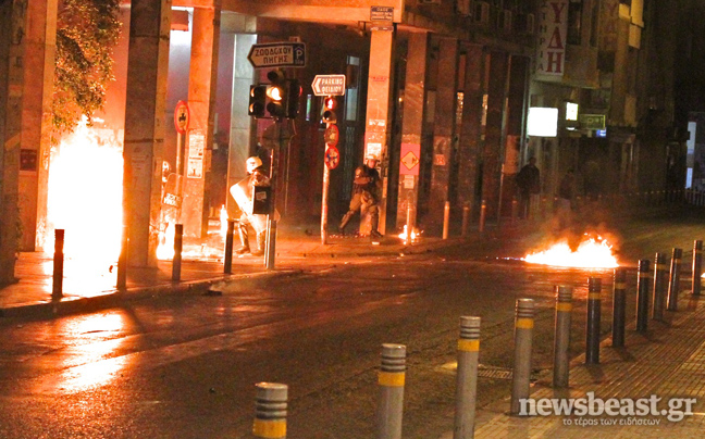 Οι κινητοποιήσεις των μαθητών που έγιναν το μεσημέρι αλλά και αυτές των αριστερών οργανώσεων και των αντεξουσιαστών που έγιναν το απόγευμα, είχαν ως αποτέλεσμα να μετατραπεί σε πεδίο μάχης το κέντρο.