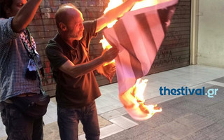 Μια χάρτινη σημαία Ισραήλ-ΗΠΑ έκαψαν διαδηλωτές, μέλη της ΑΝΤΑΡΣΥΑ, της ΟΚΔΕ και άλλων οργανώσεων της εξωκοινοβουλευτικής αριστεράς, οι οποίοι πραγματοποίησαν πορεία στο κέντρο της Θεσσαλονίκης. Του ανταποκριτή μας από το thestival.gr στη Θεσσαλονίκη
