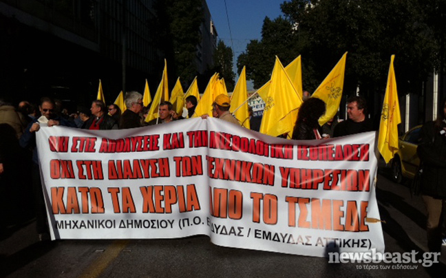 Κυκλοφοριακά προβλήματα επικρατούν στο κέντρο της πόλης όπου έχει κλείσει η οδός Σταδίου εξαιτίας της πορείας των μηχανικών του Δημοσίου προς την Τράπεζα της Ελλάδος στην Πανεπιστημίου.