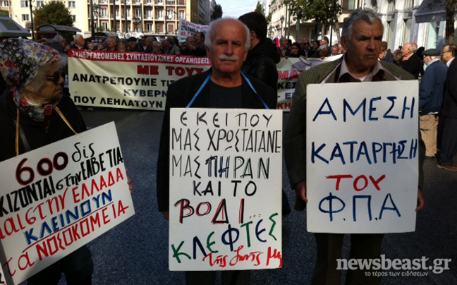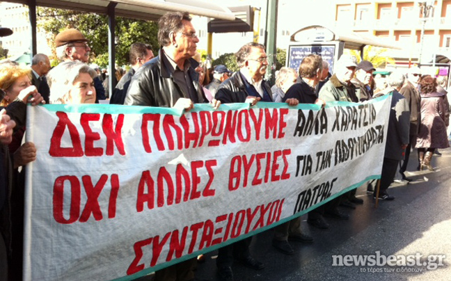 Συνταξιούχοι του ΙΚΑ, του ΟΑΕΕ, του ΝΑΤ, του ΟΣΕ συγκεντρώνονται στην πλατεία Κλαυθμώνος και στη συνέχεια θα κατευθυνθούν στο Μέγαρο Μαξίμου.