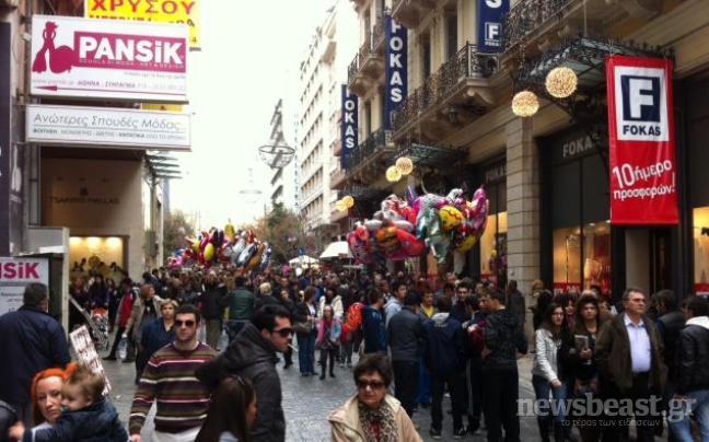 Χιλιάδες Αθηναίοι εκμεταλλεύθηκαν την ημέρα, αλλά και τον σχετικά ήπιο καιρό και επισκέφθηκαν τον αγαπημένο εμπορικό δρόμο της Αθήνας. Ωστόσο, είναι σίγουρα λιγότεροι εκείνοι που μπαίνουν μέσα στα καταστήματα και ακόμη λιγότεροι εκείνοι που ψωνίζουν.