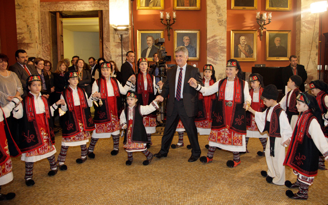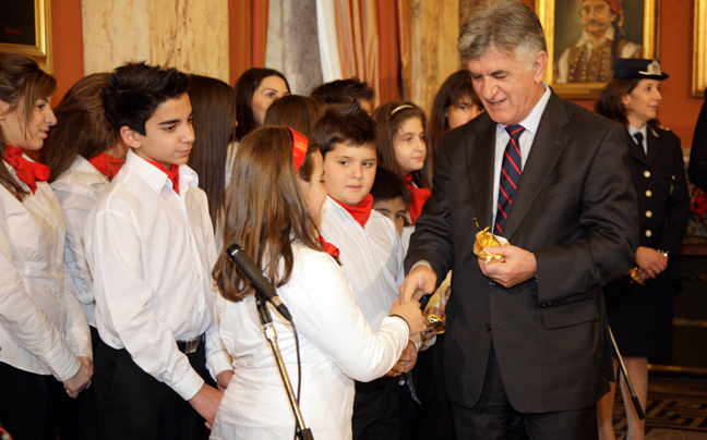 Συλλόγους από διάφορα μέρη της Ελλάδας, που έψαλαν τα κάλαντα και χόρεψαν παραδοσιακούς χορούς, υποδέχτηκε ο πρόεδρος της Βουλής Φίλιππος Πετσάλνικος.
