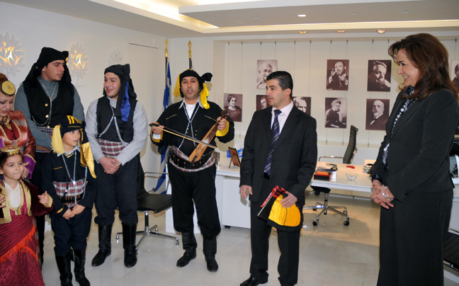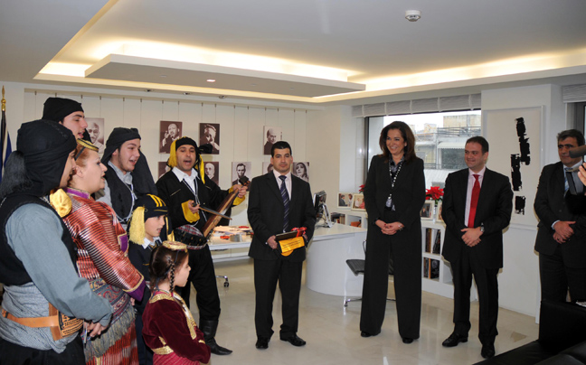 Τα χριστουγεννιάτικα κάλαντα έψαλαν στη Ντόρα Μπακογιάννη ο ποντιακός σύλλογος «Αξέχαστες Πατρίδες», που εκπροσώπησε και την Πανποντιακή Ομοσπονδία Ελλάδος, ο Σύλλογος Καστελλοριζιών και τα παιδιά της Κιβωτού.