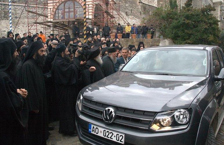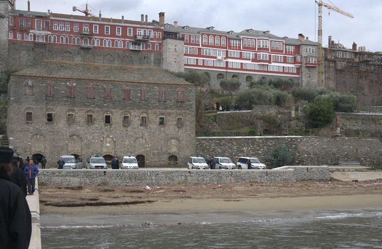 Ο ηγούμενος Εφραίμ εγκατέλειψε το μοναστήρι με πολυτελές τζιπ και στη συνέχεια με πλωτό σκάφος από το λιμάνι.