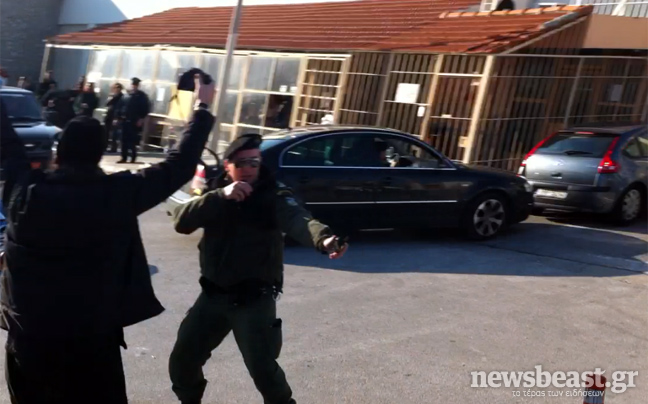 Στις φυλακές Κορυδαλλού έφθασε πριν λίγα λεπτά ο ηγούμενος Εφραίμ. Ιερείς και μοναχοί που τον περίμεναν εδώ και μία ώρα έξω από το κτίριο των φυλακών τον υποδέχτηκαν με χειροκροτήματα και φωνάζοντας «Άξιος,άξιος».