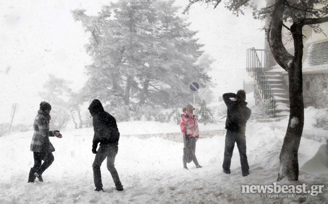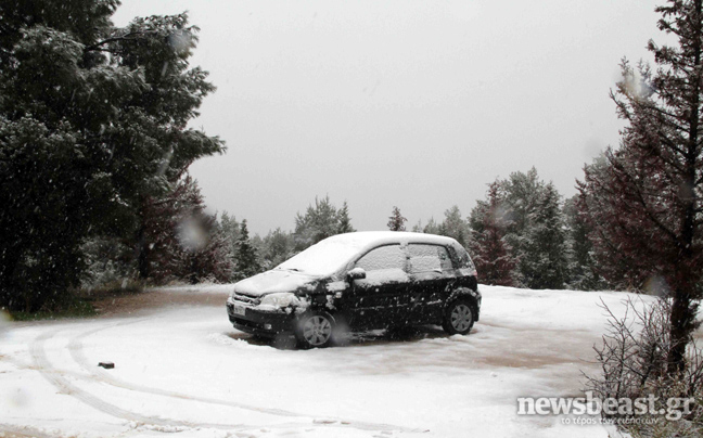 Λευκό τοπίο αντίκρισαν όσοι κατάφεραν να ανέβουν σήμερα στην Πάρνηθα, αδιαφορώντας για το τσουχτερό κρύο και τις χαμηλές θερμοκρασίες που επικρατούσαν.