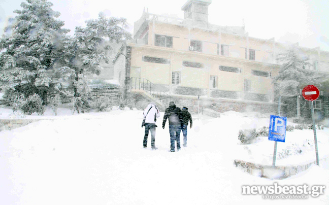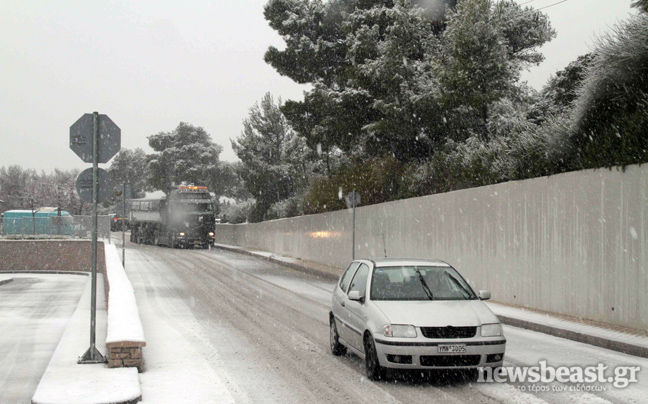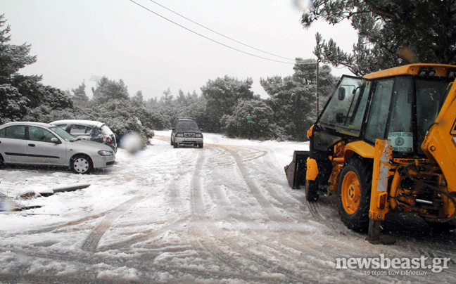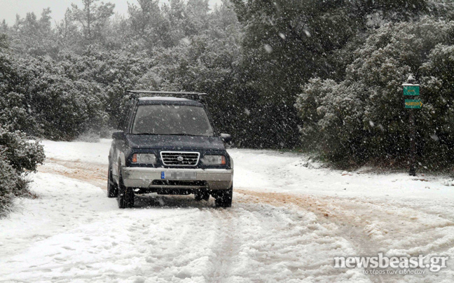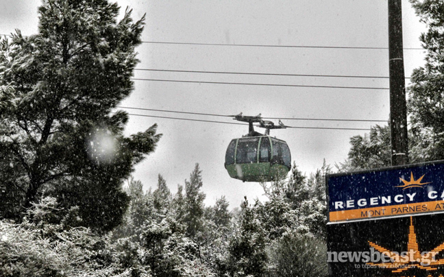 Από το μεσημέρι η λεωφόρος Πάρνηθος από το ύψος του τελεφερίκ είναι κλειστή εξαιτίας της έντονης χιονόπτωσης, ενώ είναι απαραίτητη η χρήση αντιολισθητικών αλυσίδων.