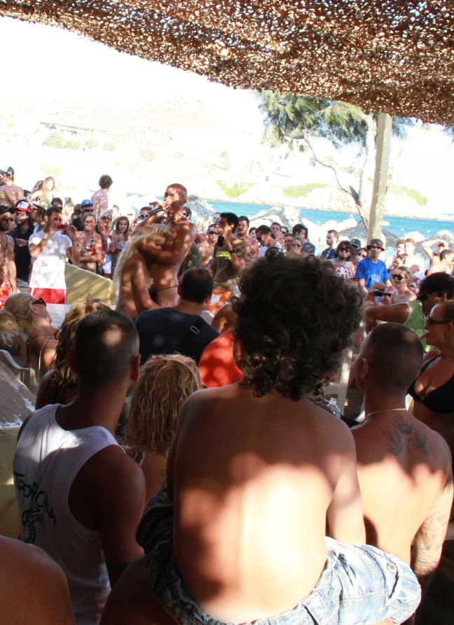 Σκηνές απείρου κάλους διαδραματίστηκαν χθες το απόγευμα σε γνωστό παραλιακό μπαρ της Μυκόνου. Κάποιες κοπέλες, οι οποίες σύμφωνα με την επίσημη θέση του μαγαζιού είναι «τουρίστριες» και κάνουν διακοπές στο νησί, ανέβηκαν στην μπάρα και ξεκίνησαν το show μαζί με έναν άντρα, ο οποίος εμφανίζεται συχνά πυκνά ως guest στο συγκεκριμένο μαγαζί. Το εάν οι κοπέλες είναι «τουρίστριες» ή επαγγελματίες χορεύτριες το αφήνουμε στην κρίση σας… Όπως θα δείτε και στις φωτογραφίες το θερμόμετρο ανέβηκε επικίνδυνα, το παράδοξο όμως είναι ότι στο χώρο βρίσκονταν και ανήλικα παιδιά.