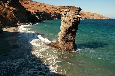 Ιδιαίτερο τοπίο που συνοδεύεται από έναν ακόμα πιο ιδιαίτερο μύθο. Μόλις 2 χλμ. ΒΑ του όρμου Κορθίου, μπορείς να αφεθείς στα καταγάλανα νερά της με το ψιλό βοτσαλάκι και να χαζέψεις ανενόχλητος τα «κέφια» της φύσης. Η δύσκολη πρόσβαση με καραβάκι από τον όρμο ή οδικώς, μέχρι ενός σημείου, έχει αφήσει αναλλοίωτη την άγρια ομορφιά του μικρού κυκλαδίτικου θησαυρού.