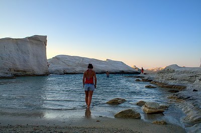 Βρίσκεται δυτικά του Αδάμαντα, του λιμανιού της Μήλου, και 10 χλμ. από την Πλάκα. Τα σμιλεμένα από τη θάλασσα, κατάλευκα, επιμήκη βράχια του, φιλοξενούν μικρές σπηλιές, ενώ ανάμεσά τους υπάρχει μια μικρή -αλλά συνήθως κατάμεστη- παραλία. Η απουσία βλάστησης και τα καταγάλανα νερά συνθέτουν ένα τοπίο που κόβει την ανάσα. Για να το προσεγγίσετε πρέπει να ακολουθήσετε ένα βατό χωματόδρομο 700 μέτρων.