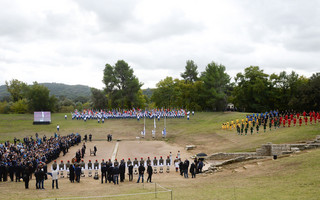 Μετά τις καθιερωμένες ομιλίες των επισήμων ξεκίνησε το τελετουργικό με αποκορύφωμα το άναμμα της φλόγας από την Πρωθιέρεια Κατερίνα Λέχου.