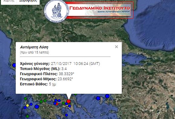Σύμφωνα με την πρώτη, αυτόματη μέτρηση του Γεωδυναμικού Ινστιτούτου, έγιναν δύο σεισμοί με το ίδιο επίκεντρο.