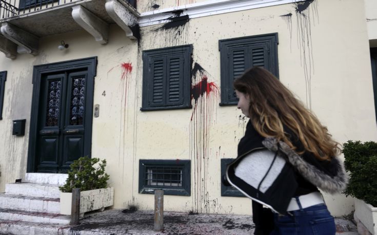 Επίθεση με μπογιές στην πρόσοψη του Ιδρύματος Δικαστικών Μελετών στην οδό Επαμεινώνδα 4 στην Πλάκα, πραγματοποίησε το πρωί ομάδα αντιεξουσιαστών.