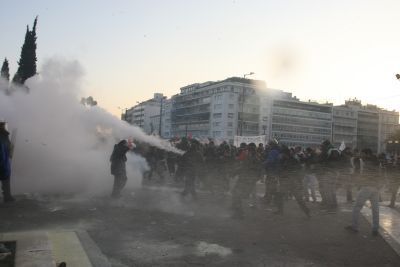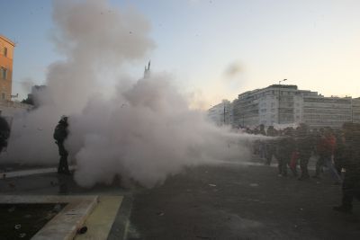 Η ατμόσφαιρα στους δρόμους γύρω από την πλατεία Συντάγματος είναι αποπνικτική καθώς έχουν πέσει «βροχή» τα δακρυγόνα και τα χημικά από τις αστυνομικές δυνάμεις.