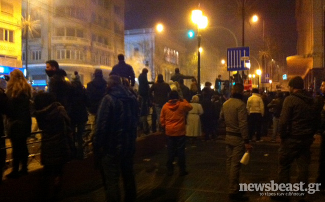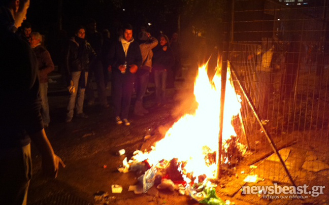 «Εγκλωβισμένοι» στην οδό Βουκουρεστίου παραμένουν πολλοί από τους διαδηλωτές λόγω της αποπνικτικής ατμόσφαιρας που επικρατεί εξαιτίας της εκτεταμένης χρήσης χημικών από τις δυνάμεις των ΜΑΤ. Το πλήθος προσπαθεί να διαφύγει από τα στενά γύρω από την πλατεία Συντάγματος και ανάβει φωτιές για να προστατευτεί από τα χημικά.