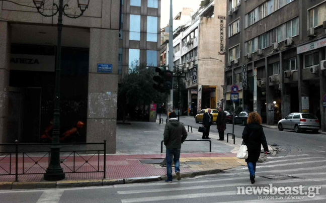 Με τα περισσότερα φανάρια κατεστραμμένα και τα υπόλοιπα εκτός ρεύματος για να γίνουν οι εργασίες αποκατάστασης, οι πολίτες δίνουν αγώνα στο κέντρο για να διασχίσουν ένα δρόμο.