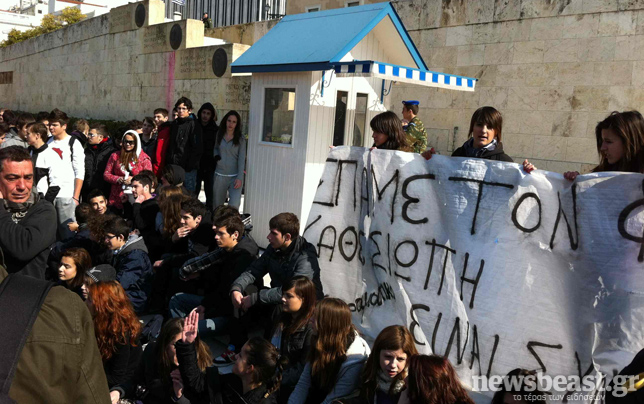 Μπροστά από το μνημείο του Αγνώστου Στρατιώτη, στη Βουλή, έχουν συγκεντρωθεί αυτή τη στιγμή δεκάδες μαθητές, στο πλαίσιο διαμαρτυρίας τους.