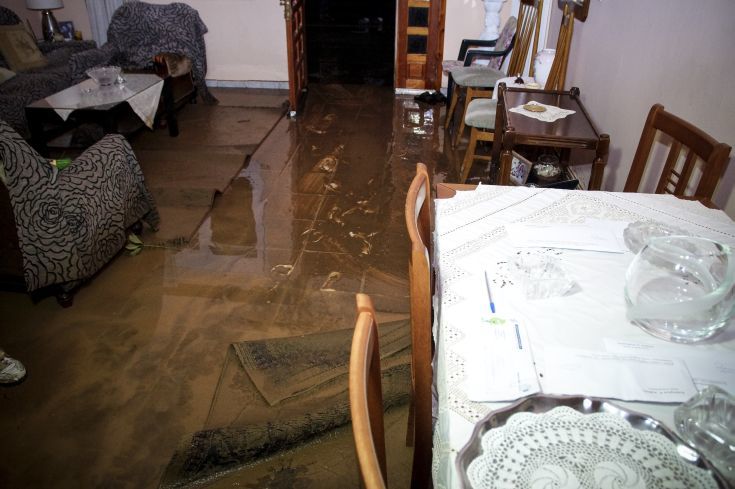 Περισσότερα από 30 σπίτια και 7 επιχειρήσεις στην περιοχή υπέστησαν σοβαρές ζημιές, όταν στη 01:00 τα ξημερώματα τα ορμητικά νερά ενός χειμάρρου μπήκαν στα σπίτια και κινδύνευσαν ζωές. Η Πυροσβεστική απεγκλώβισε 10 άτομα, ενώ έως αυτήν την ώρα γίνονται αντλήσεις υδάτων από υπόγεια σπιτιών. Οι κάτοικοι, σε απόγνωση, βλέπουν τις περιουσίες τους μέσα στα λασπόνερα και επιρρίπτουν ευθύνες σε δημοτικές αρχές του παρελθόντος καταγγέλλοντας ότι μπάζωσαν φρεάτια και ρέματα για να κάνουν δρόμους.