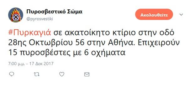 Σύμφωνα με την Πυροσβεστική, έχει εκκενωθεί η γειτονική πολυκατοικία.