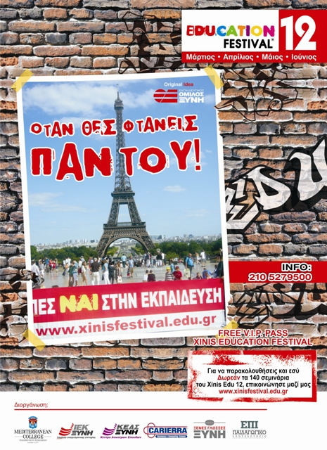 Στη χώρα που ο ήλιος και η θάλασσα αποτελούν πόλο έλξης για χιλιάδες επισκέπτες από όλο τον κόσμο, ο Εκπαιδευτικός Όμιλος Ξυνή, πρωτοπόρος στο χώρο της εκμάθησης τουριστικών επαγγελμάτων, δεν θα μπορούσε να εγκαινιάσει το XINIS EDUCATION FESTIVAL 2012 με καλύτερο τρόπο, από μια ολόκληρη εβδομάδα δωρεάν σεμιναρίων, αφιερωμένη στον τουρισμό.