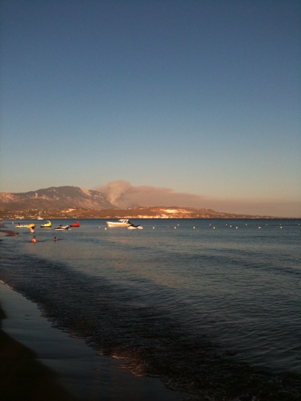 Την κατάσβεση δυσκολεύουν οι δυνατοί άνεμοι που πνέουν στην περιοχή.