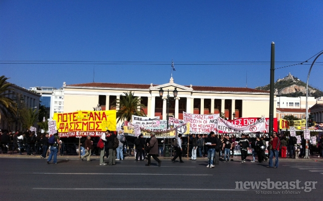 Στο μεταξύ, προβλήματα παρατηρήθηκαν νωρίτερα στο κέντρο, καθώς έκλεισε η Πανεπιστημίου και τα γύρω στενά, εξαιτίας της πορείας. Στο αντιρατσιστικό συλλαλητήριο συμμετέχουν τουλάχιστον 1.000 άτομα.