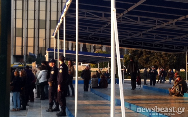 Έτοιμες είναι οι εξέδρες των επισήμων στην πλατεία Συντάγματος για την παρέλαση της 25ης Μαρτίου.