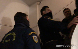 Τετ-α-τετ στον 4ο όροφο πολυκατοικίας επί της οδού Καποδιστρίου 18 στην Αθήνα, έξω από συμβολαιογραφικό γραφείο, έχουν βρεθεί άνδρες των ΜΑΤ χωρίς βαρύ εξοπλισμό και μέλη του κινήματος «Δεν πληρώνω», οι οποίοι διαμαρτύρονται για τους πλειστηριασμούς.