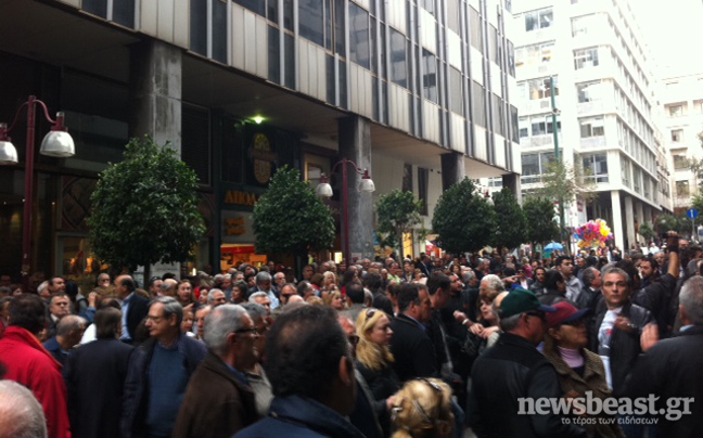 Μικροένταση επικρατεί αυτήν την ώρα έξω από το υπουργείο Οικονομικών όπου είναι συγκεντρωμένοι οι ομολογιούχοι και διαμαρτύρονται γιατί είχαν επενδύσει σε ομόλογα και τώρα βλέπουν τα χρήματά τους να κάνουν «φτερά».