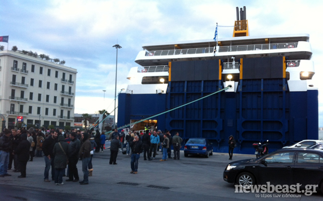 Από νωρίς το πρωί στο λιμάνι του Πειραιά υπάρχουν μόνο ναυτεργάτες που μαζεύτηκαν εκεί προκειμένου να περιφρουρήσουν την απεργία τους.