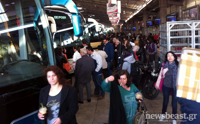 Από νωρίς το πρωί η μπροστινή πύλη του ΚΤΕΛ είναι κλειστή, ενώ μέλη της ομοσπονδίας απέκλεισαν και την πίσω έξοδο του σταθμού.