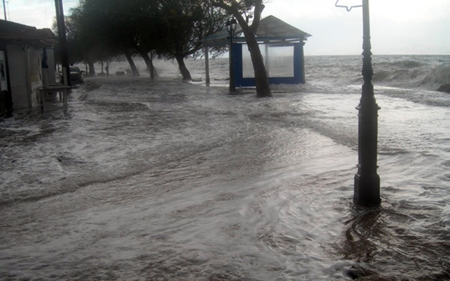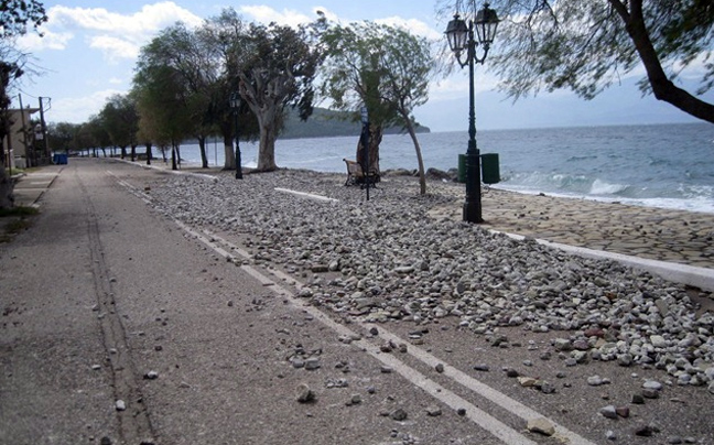 Οι παραλιακοί δρόμοι σκεπάστηκαν από κύματα και πέτρες από τη θάλασσα, με αποτέλεσμα τη διακοπή τη κυκλοφορίας και αρκετά παραλιακά σπίτια και καταστήματα υπέστησαν ζημιές, χωρίς ευτυχώς να υπάρχουν τραυματισμοί.