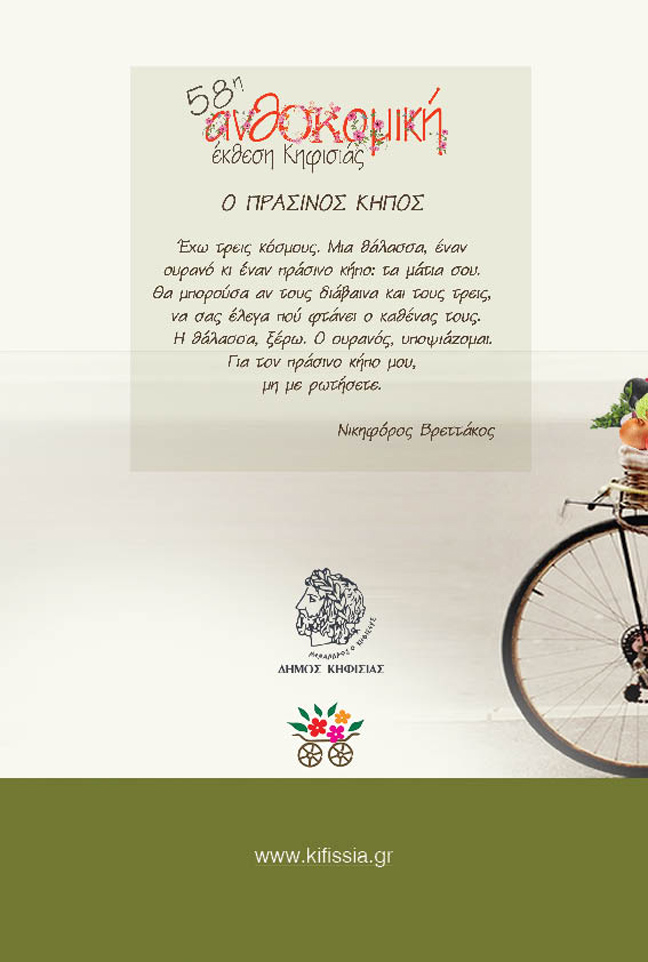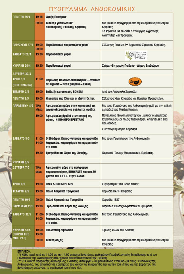 Η 58η Ανθοκομική Έκθεση Κηφισιάς ανοίγει τις πύλες της, την Πέμπτη 26 Απριλίου 2012 στο Άλσος «Δημήτρης Ζωμόπουλος».