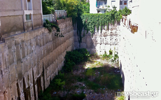 Αιτία είναι η τεράστια τρύπα στη μέση του οικοδομικού τετραγώνου, απομεινάρι ενός φιλόδοξου οικοδομικού σχεδίου για τη δημιουργία πολυόροφου πάρκινγκ.