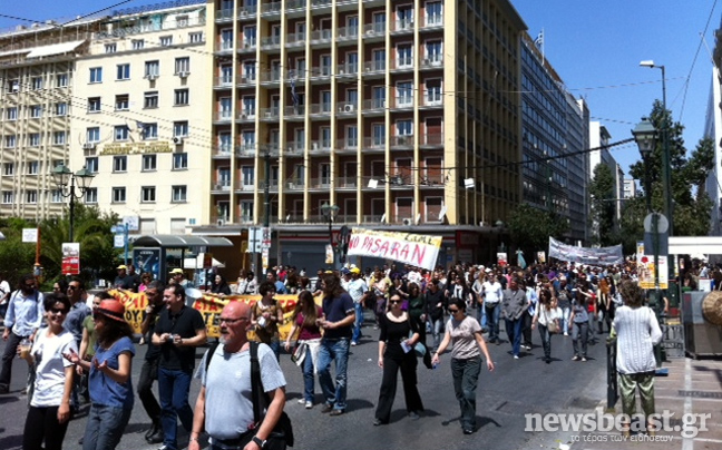 Ξεκίνησε η πορεία από το Εθνικό Αρχαιολογικό Μουσείο στην Πατησίων. Μετά το τελικό κάλεσμα που ήταν στις 12:00 περίπου 2.000 συγκεντρωμένοι μαθητές, φοιτητές, άνεργοι, πρωτοβάθμια σωματεία και κόμματα της εξωκοινοβουλευτικής Αριστεράς ανεβαίνουν την Πατησίων, οδεύοντας προς τη Βουλή.