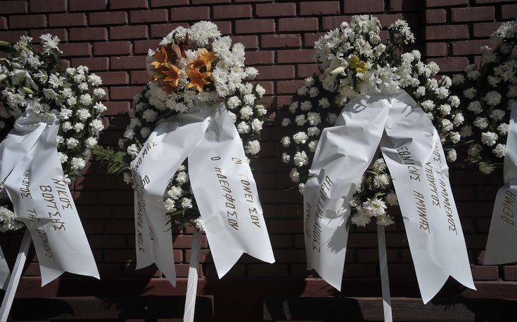 Εκεί βρίσκονται από νωρίς φίλοι και συγγενείς οι οποίοι έφτασαν στον Ιερό Ναό Κοιμήσεως της Θεοτόκου κρατώντας ένα λουλούδι στα χέρια τους για να τον αποχαιρετήσουν ενώ στον προαύλιο χώρο της εκκλησίας υπάρχουν δεκάδες στεφάνια.