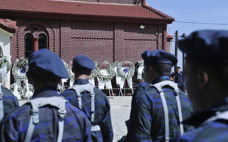 Λίγο μετά τις 12.00 το μεσημέρι τελέστηκε τρισάγιο. Η μητέρα της γυναίκας του σμηναγού Γιώργου Μπαλταδώρου δεν άντεξε και λύγισε. Λιποθύμησε και μεταφέρθηκε με φορείο από την εκκλησία σε ασθενοφόρο της Πολεμικής Αεροπορίας. Στο ίδιο ασθενοφόρο παρέμεινε και η σύζυγος του για προληπτικούς λόγους μέχρι την έναρξη της νεκρώσιμης ακολουθίας.