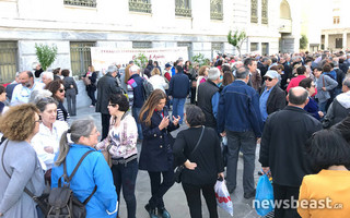 Περίπου 200 άτομα βρίσκονται αυτήν την ώρα στα κεντρικά της ΕΤΕ, στο κέντρο της Αθήνας, ζητώντας να τους καταβληθούν οφειλόμενες επικουρήσεις, οι οποίες -όπως αναφέρουν- παρακρατούνται «παράνομα και καταχρηστικά».